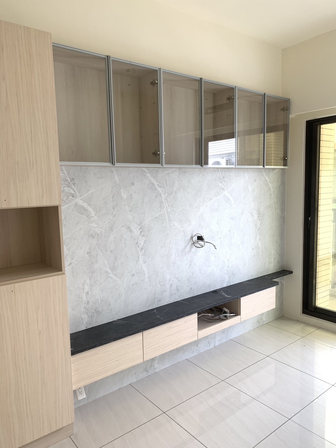 本案以多功能使用為核心,將系統櫃與書桌結合,滿足收納、工作與日常使用需求,櫃體配置依照實際操作順序安排,使物品取用更加直覺,避免空間被單一功能侷限,提升整體使用彈性。